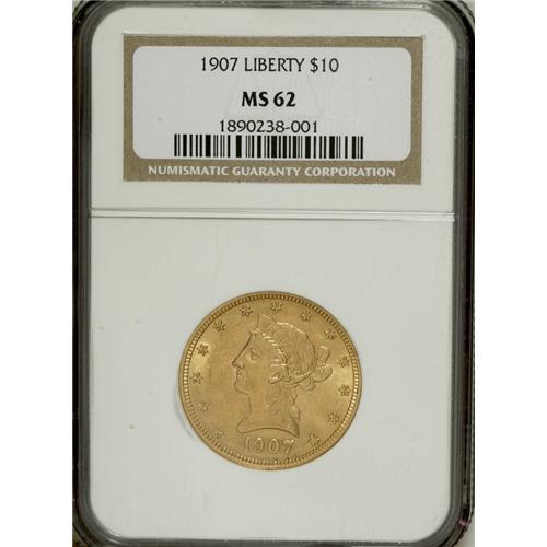 1907 $10 MS62 NGC. NGC Census: (6621/4971). PCGS P