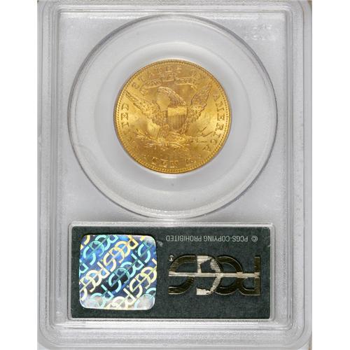 1907 $10 MS63 PCGS. Intense satiny luster and luscious