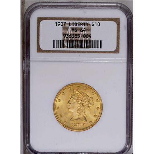 <B>1907<$10> MS64 NGC.</B></I> A lustrous and boldly impressed Liberty eagle with pleasantly smooth fields and devices. An original type coin from the final year of the long-lived design.