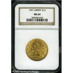 <B>1907 $10 MS64 NGC.</B></I> Straw-gold surfaces display soft luster, well struck devices, and just a few minute marks.<BR><I>From The Richard J. Chouinard Collection of United States Coins, Part Two.</B></I> Lot:8841