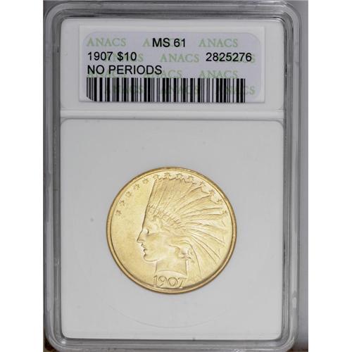 1907 $10 No Motto MS61 ANACS. Boldly struck with only 1907[$10] No Motto MS61 ANACS.