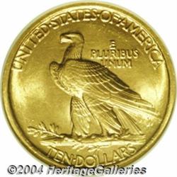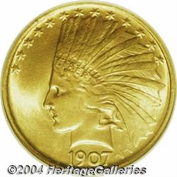 <table><tr><td><table><tr><td>1907 $10 No Motto MS64 NGC. An above average strike for this sometimes ill-defined first year issue, with blazing golden surfaces. There is a small contact mark on the Indian's chin, this being a hardly detracting factor. <BR><BR><B>Important notice:</B> Heritage usually auctions material at the rate of 200-250 lots per hour. On some occasions eBay Live bid software or the Internet may not be able to keep up with the pace of the auction. We recommend placing a realistic absentee bid now as insurance to avoid disappointment. Occasionally the auctioneer may eliminate or reject an eBay Live bid, and the auctioneer may also reopen a lot after the close of the eBay live bidding (usually because we missed an audience bid), and may reject your bid even if it shows you as the winning bidder. By bidding via eBay Live, you agree that Heritage may award the lot to another bidder at its sole discretion under the circumstances described above or any other reasonable circumstances. Since eBay bids are not shown to us until we open the lot on the floor, we treat those bids just like floor bids. In most cases the floor responds before the eBay bid is presented to us, due to Internet lag time, so for consistency we have made it a policy that floor bids are always considered first over tie eBay live bids. Also please note that all Heritage lots purchased through eBay Live carry a 20% Buyer's Premium. Please make sure you read the Terms and Conditions before you bid. <BR><BR><B>IMPORTANT ANNOUNCEMENT ABOUT RESERVES:</B> Heritage now divulges all reserves on its web site 7 days before every auction. If you want to know whether the reserve on this lot has been met, and if not, what the reserve amount is, please visit this lot page on the HeritageCoin.com web site, or email: bid@HeritageGalleries.com </span></font></td></tr></table></td></tr></table>