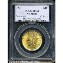 <table><tbody><tr><td><table> <TR><TD width="100%"><TABLE cellSpacing=1 cellPadding=3 width="100%" border=0><TBODY><TR><TD width="100%" bgColor=#79735c><FONT face=arial color=#ffffff size=3><B>Description</B> </FONT></TD></TR><TR><TD width="100%" bgColor=#ffffff><FONT face=arial size=2><B>1907 $10 No Motto MS64 PCGS.</B></I> A sharply struck example of this popular first-year issue. The surfaces are bright and satiny with glowing, golden-yellow, satin-like mint luster. There is very little that separates this coin from a full MS65. </FONT></TD></TR></TBODY></TABLE></TD></TR></TBODY></TABLE><BR><A name=PricesRealized></A><TABLE cellSpacing=0 cellPadding=0 width="100%" bgColor=#000000 border=0><TBODY><TR><TD width="100%"><TABLE cellSpacing=1 cellPadding=3 width="100%" border=0><TBODY><TR><TD width="100%" bgColor=#79735c><A name=PR><FONT face=arial color=#ffffff size=3><B>Previous Prices from Heritage Auctions</B> </FONT></A></TD></TR><TR><TD bgColor=#f6f6ed><TABLE cellSpacing=0 cellPadding=0 width="100%" border=1><TBODY><TR><TD align=middle width="33%"><B>Date</B></TD><TD align=middle width="33%"><B>Service</B></TD><TD align=middle width="33%"><B>Price</B></TD></TR><TR bgColor=whitesmoke><TD width="33%"><B>01/07/2004</B></TD><TD width="33%">NGC</TD><TD width="33%">$3,680.00</TD></TR><TR bgColor=whitesmoke><TD width="33%"><B>01/07/2004</B></TD><TD width="33%">NGC</TD><TD width="33%">$3,680.00</TD></TR><TR bgColor=whitesmoke><TD width="33%"><B>11/07/2003</B></TD><TD width="33%">NGC</TD><TD width="33%">$2,415.00</TD></TR><TR bgColor=whitesmoke><TD width="33%"><B>11/07/2003</B></TD><TD width="33%">NGC</TD><TD width="33%">$2,415.00</TD></TR><TR bgColor=whitesmoke><TD width="33%"><B>11/07/2003</B></TD><TD width="33%">PCGS</TD><TD width="33%">$3,680.00</TD></TR><TR bgColor=whitesmoke><TD width="33%"><B>11/07/2003</B></TD><TD width="33%">PCGS</TD><TD width="33%">$3,680.00</TD></TR><TR bgColor=whitesmoke><TD width="33%"><B>09/20/2003</B></TD><TD width="33%">PCGS</TD><TD width="33%">$3,680.00</TD></TR><TR bgColor=whitesmoke><TD width="33%"><B>09/20/2003</B></TD><TD width="33%">PCGS</TD><TD width="33%">$3,680.00</TD></TR><TR bgColor=whitesmoke><TD width="33%"><B>09/20/2003</B></TD><TD width="33%">PCGS</TD><TD width="33%">$2,875.00</TD></TR><TR bgColor=whitesmoke><TD width="33%"><B>09/20/2003</B></TD><TD width="33%">PCGS</TD><TD width="33%">$2,875.00</TD></TR><TR bgColor=whitesmoke><TD width="33%"><B>05/03/2003</B></TD><TD width="33%">PCGS</TD><TD width="33%">$2,875.00</TD></TR><TR bgColor=whitesmoke><TD width="33%"><B>05/03/2003</B></TD><TD width="33%">PCGS</TD><TD width="33%">$2,875.00</TD></TR><TR bgColor=whitesmoke><TD width="33%"><B>09/28/2002</B></TD><TD width="33%">NGC</TD><TD width="33%">$2,357.50</TD></TR><TR bgColor=whitesmoke><TD width="33%"><B>09/28/2002</B></TD><TD width="33%">NGC</TD><TD width="33%">$2,357.50</TD></TR><TR bgColor=whitesmoke><TD width="33%"><B>09/28/2002</B></TD><TD width="33%">PCGS</TD><TD width="33%">$2,990.00</TD></TR><TR bgColor=whitesmoke><TD width="33%"><B>09/28/2002</B></TD><TD width="33%">PCGS</TD><TD width="33%">$2,990.00</TD></TR><TR bgColor=whitesmoke><TD width="33%"><B>07/29/2002</B></TD><TD width="33%">PCGS</TD><TD width="33%">$2,702.50</TD></TR><TR bgColor=whitesmoke><TD width="33%"><B>07/29/2002</B></TD><TD width="33%">PCGS</TD><TD width="33%">$2,702.50</TD></TR><TR bgColor=whitesmoke><TD width="33%"><B>06/08/2002</B></TD><TD width="33%">NGC</TD><TD width="33%">$2,760.00</TD></TR><TR bgColor=whitesmoke><TD width="33%"><B>06/08/2002</B></TD><TD width="33%">NGC</TD><TD width="33%">$2,760.00</TD></TR><TR bgColor=whitesmoke><TD width="33%"><B>04/27/2002</B></TD><TD width="33%">NGC</TD><TD width="33%">$2,472.50</TD></TR><TR bgColor=whitesmoke><TD width="33%"><B>04/27/2002</B></TD><TD width="33%">NGC</TD><TD width="33%">$2,472.50</TD></TR><TR bgColor=whitesmoke><TD width="33%"><B>02/23/2002</B></TD><TD width="33%">PCGS</TD><TD width="33%">$3,105.00</TD></TR><TR bgColor=whitesmoke><TD width="33%"><B>02/23/2002</B></TD><TD width="33%">PCGS</TD><TD width="33%">$3,105.00</TD></TR><TR bgColor=whitesmoke><TD width="33%"><B>02/23/2002</B></TD><TD width="33%">PCGS</TD><TD width="33%">$3,105.00</TD></TR><TR bgColor=whitesmoke><TD width="33%"><B>02/23/2002</B></TD><TD width="33%">PCGS</TD><TD width="33%">$3,105.00</TD></TR><TR bgColor=whitesmoke><TD width="33%"><B>01/12/2002</B></TD><TD width="33%">NGC</TD><TD width="33%">$2,185.00</TD></TR><TR bgColor=whitesmoke><TD width="33%"><B>01/12/2002</B></TD><TD width="33%">NGC</TD><TD width="33%">$2,185.00</TD></TR><TR bgColor=whitesmoke><TD width="33%"><B>01/12/2002</B></TD><TD width="33%">PCGS</TD><TD width="33%">$2,645.00</TD></TR><TR bgColor=whitesmoke><TD width="33%"><B>01/12/2002</B></TD><TD width="33%">PCGS</TD><TD width="33%">$2,645.00</TD></TR><TR bgColor=whitesmoke><TD width="33%"><B>08/08/2001</B></TD><TD width="33%">PCGS</TD><TD width="33%">$3,220.00</TD></TR><TR bgColor=whitesmoke><TD width="33%"><B>08/08/2001</B></TD><TD width="33%">PCGS</TD><TD width="33%">$3,220.00</TD></TR><TR bgColor=whitesmoke><TD width="33%"><B>05/31/2001</B></TD><TD width="33%">NGC</TD><TD width="33%">$2,070.00</TD></TR><TR bgColor=whitesmoke><TD width="33%"><B>05/31/2001</B></TD><TD width="33%">NGC</TD><TD width="33%">$2,070.00</TD></TR><TR bgColor=whitesmoke><TD width="33%"><B>05/31/2001</B></TD><TD width="33%">NGC</TD><TD width="33%">$2,530.00</TD></TR><TR bgColor=whitesmoke><TD width="33%"><B>05/31/2001</B></TD><TD width="33%">NGC</TD><TD width="33%">$2,530.00</TD></TR><TR bgColor=whitesmoke><TD width="33%"><B>04/05/2001</B></TD><TD width="33%">ANACS</TD><TD width="33%">$1,610.00</TD></TR><TR bgColor=whitesmoke><TD width="33%"><B>04/05/2001</B></TD><TD width="33%">ANACS</TD><TD width="33%">$1,610.00</TD></TR><TR bgColor=whitesmoke><TD width="33%"><B>02/23/2001</B></TD><TD width="33%">PCGS</TD><TD width="33%">$2,099.90</TD></TR><TR bgColor=whitesmoke><TD width="33%"><B>02/23/2001</B></TD><TD width="33%">PCGS</TD><TD width="33%">$2,099.90</