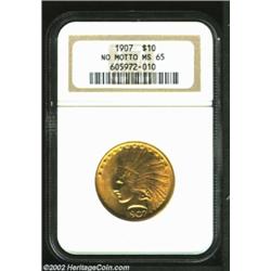 1907 $10 No Motto MS65 NGC. The 1907 No Motto Ten Dollar is undoubtedly one of the best produced and