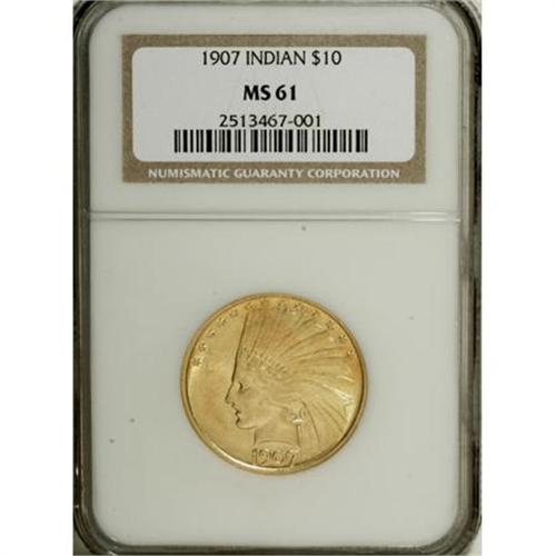1907 $10 No Periods MS61 NGC. NGC Census: (838/282