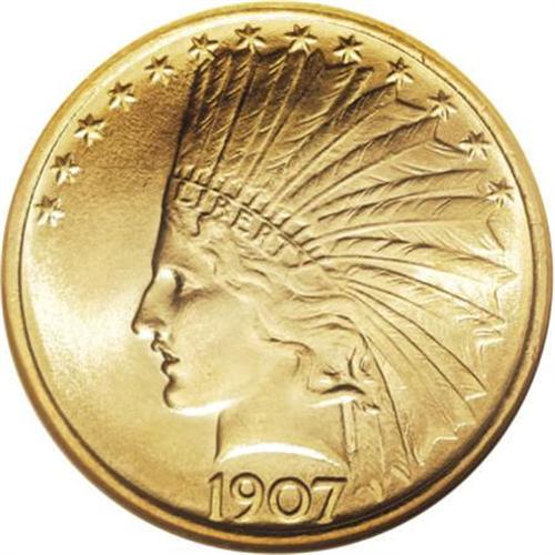 <B>1907 $10 No Periods MS65 NGC.</B></I> An immensely appealing representative of this short-lived type, well-detailed overall with vibrant sun-gold surfaces and intense luster. Unlike lower-graded examples of the same issue, this piece shows only a few tiny flaws in the fields, and the devices are carefully preserved as well. As with all Saint-Gaudens eagles, the 1907 No Periods is challenging in Gem. An excellent candidate for the similarly graded type or date set.<BR><BR><B>Coin Engraver:</B> Augustus Saint-Gaudens<BR><BR><b>Shipping:</b> Coins & Currency (<a target="_blank" href="http://www.heritageauctions.com/common/shipping.php">view shipping information</a>)