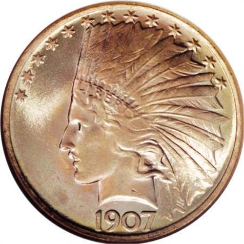 <B>1907 $10 No Periods MS66 </B></I> S<B> NGC.</B></I> Charles Barber, not exactly an admirer of designer Augustus Saint-Gaudens, fiddled with his design posthumously to create the circulation issue, removing the periods or triangular stops. The Star designation is aptly earned, with gorgeous alternating areas of mint-green and pinkish-gold scattered throughout both sides of this pristine piece. Although the 1907 No Periods is one of the most available dates in the series in Gem grade or higher, this coin is nonetheless quite memorable, and could be the starting point for a phenomenally beautiful date run or type coin assemblage of delectably toned gold. Census: 3 in 66 S, 20 finer (8/07).<BR><BR><B>Coin Engraver:</B> Augustus Saint-Gaudens<BR><BR><b>Shipping:</b> Coins & Currency (<a target="_blank" href="http://www.heritageauctions.com/common/shipping.php">view shipping information</a>)