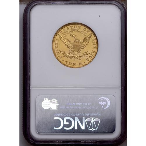 <B>1907<$10> Prooflike MS62 NGC.</B></I> Well struck with rich golden coloration and, most notably, mirrored fields of more than modest depth. Abrasions are far more numerous on the obverse. Only a few 1907 Liberty eagles have been awarded a Prooflike designation by NGC. Census: 4 in 62 Prooflike, 2 finer (3/06). <BR><BR><B>Important notice:</B> Heritage usually auctions material at the rate of 200-250 lots per hour. On some occasions eBay Live bid software or the Internet may not be able to keep up with the pace of the auction. We recommend placing a realistic absentee bid now as insurance to avoid disappointment. Occasionally the auctioneer may eliminate or reject an eBay Live bid, and the auctioneer may also reopen a lot after the close of the eBay live bidding (usually because we missed an audience bid), and may reject your bid even if it shows you as the winning bidder. By bidding via eBay Live, you agree that Heritage may award the lot to another bidder at its sole discretion under the circumstances described above or any other reasonable circumstances. Since eBay bids are not shown to us until we open the lot on the floor, we treat those bids just like floor bids. In most cases the floor responds before the eBay bid is presented to us, due to Internet lag time, so for consistency we have made it a policy that floor bids are always considered first over tie eBay live bids. Also please note that all Heritage lots purchased through eBay Live carry a 20% Buyer's Premium. Please make sure you read the Terms and Conditions before you bid. This lot is being auctioned in conjunction with a live floor auction by Heritage Galleries & Auctioneers. All final auction and invoice information will be supplied by Heritage Galleries & Auctioneers, and all other information should be considered preliminary. Lot:4082 <BR><BR><B>Winning Notification and Billing:</B> After the FINAL session in this auction is complete, Heritage will send e-mail and snail mail invoices. This process normally takes several days. All final auction and invoice information will be supplied by Heritage Galleries & Auctioneers, and all other information should be considered preliminary. <BR><BR>This auction will be conducted on a live auction floor and over the Internet through eBay Live. If you choose to place an absentee bid, please take a moment to <font color='#0000ff'><u><a href='http://pages.ebay.com/liveauctions/help/before/laabsentee.html'>learn how eBay Live absentee bidding works</a></u></font><font color='#000000'>