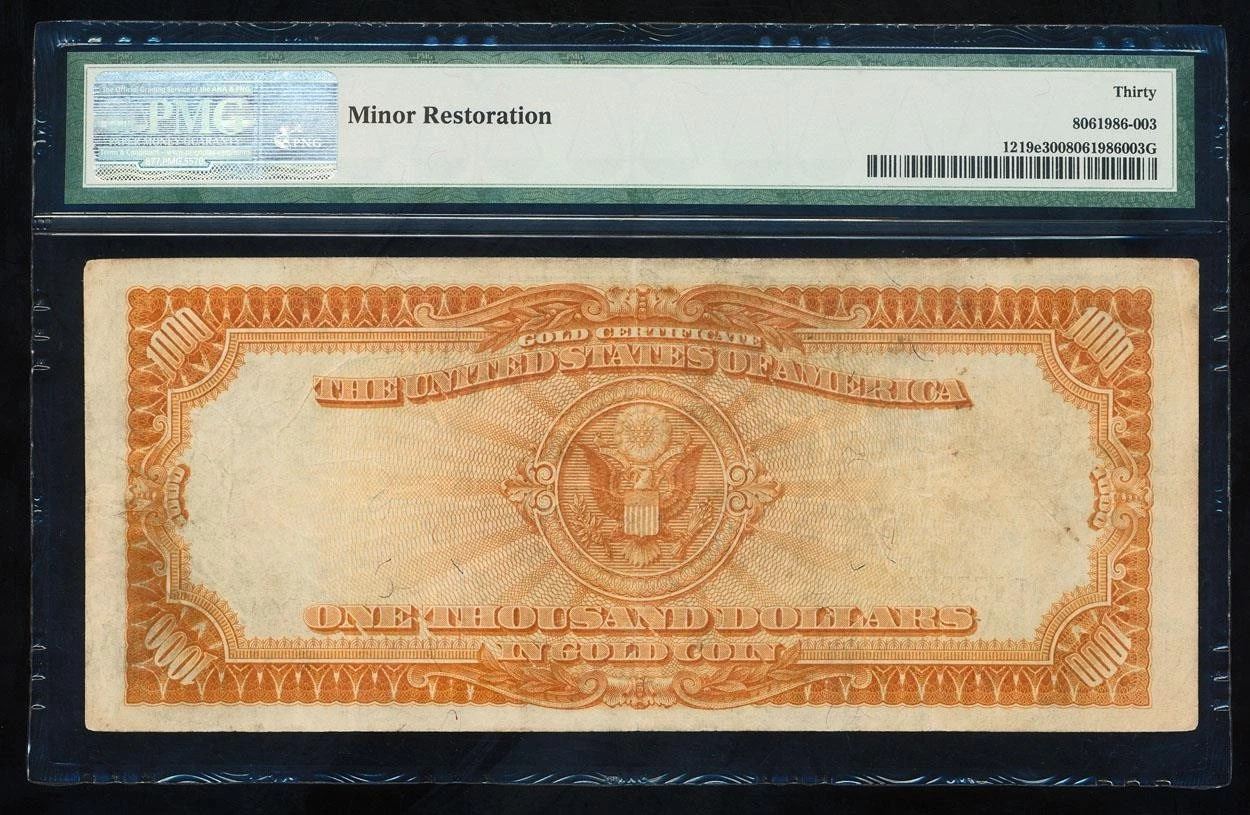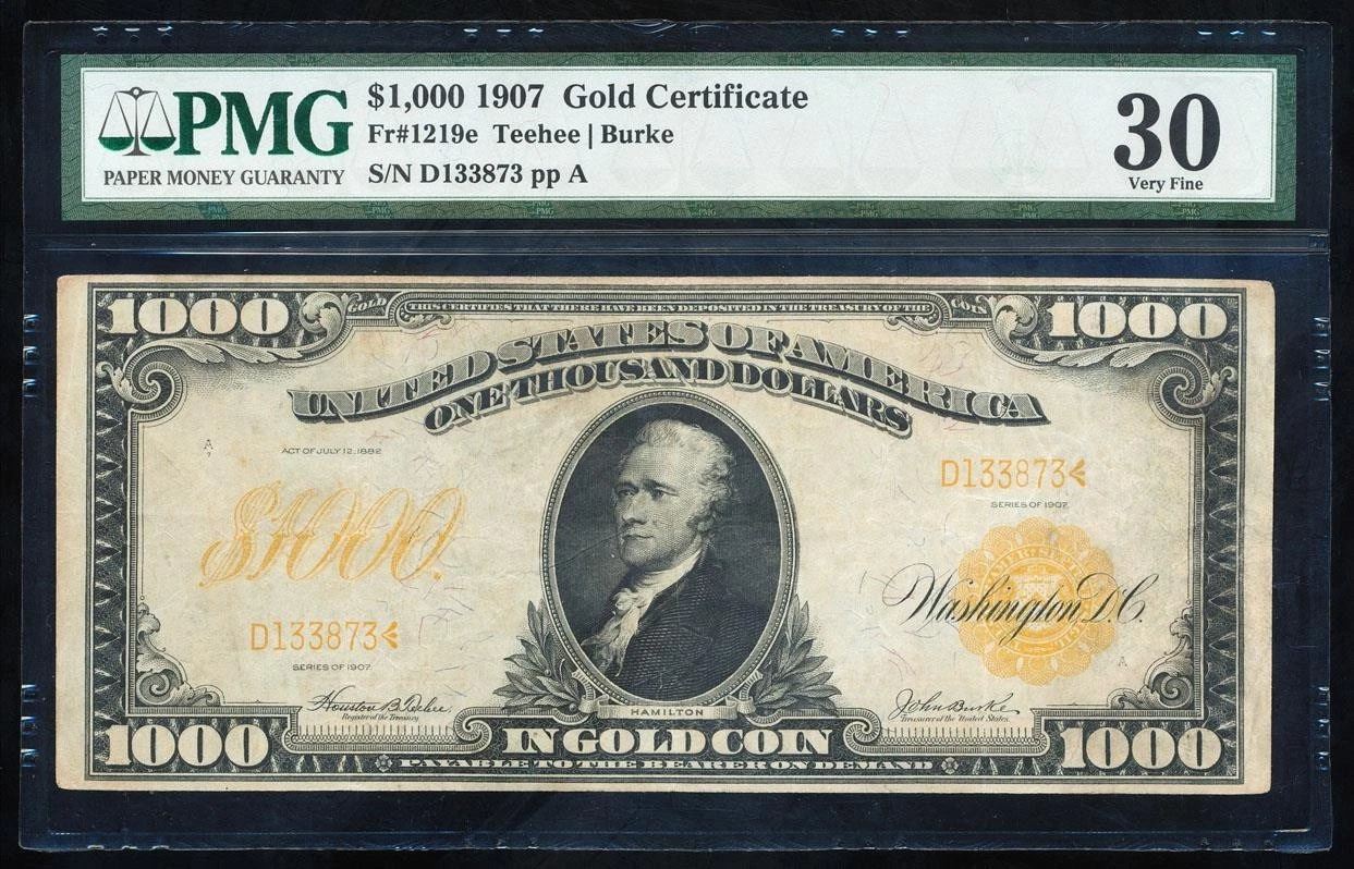 One 1907 $1000 Gold Certificate PMG 30.