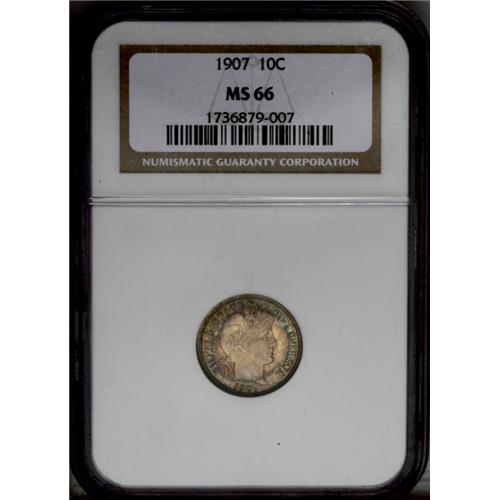 1907 10C MS66 NGC. Sharp design features and frosty mi 1907[10C] MS66 NGC.