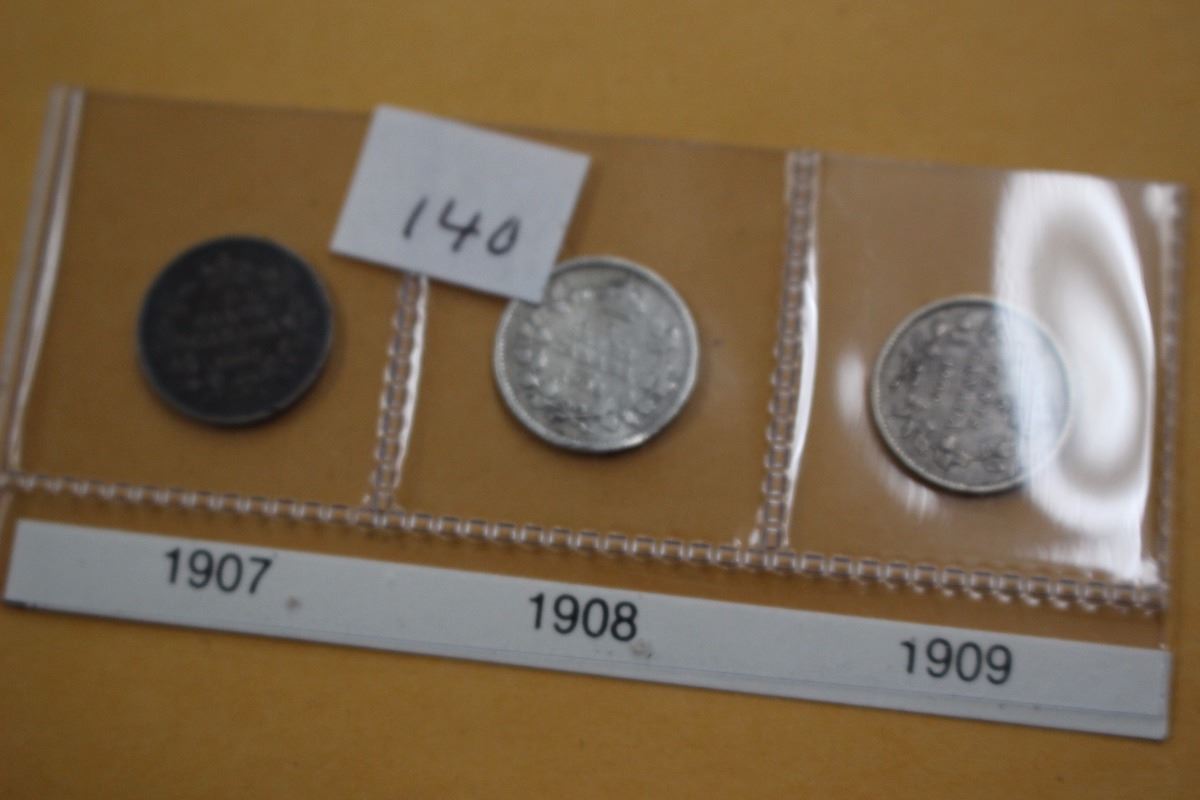 1907; 1908; 1909 Cdn. Small Five Cent Coins