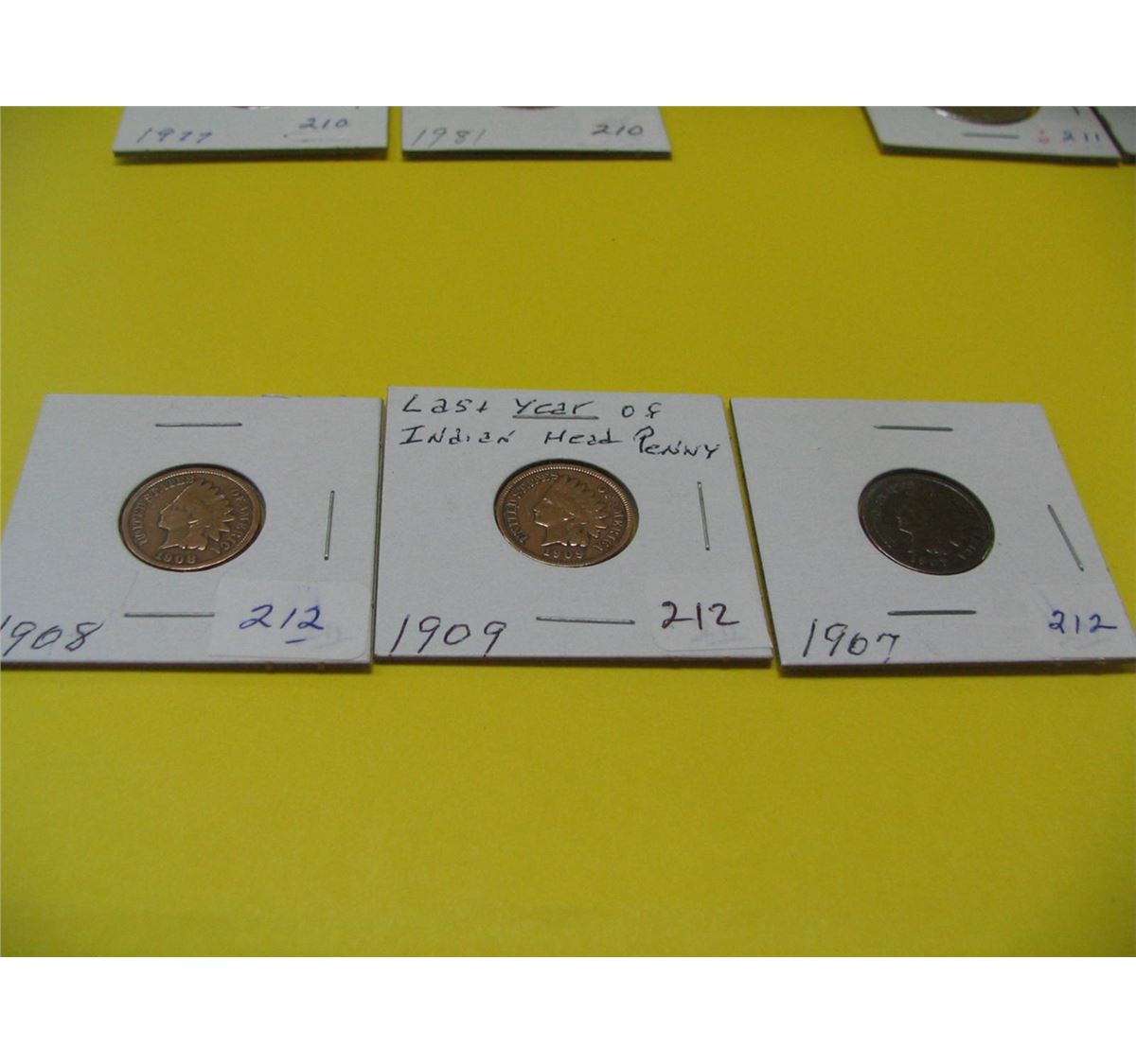 1907, 1908, 1909 U.S.A. Indian Head One Cent Pcs.