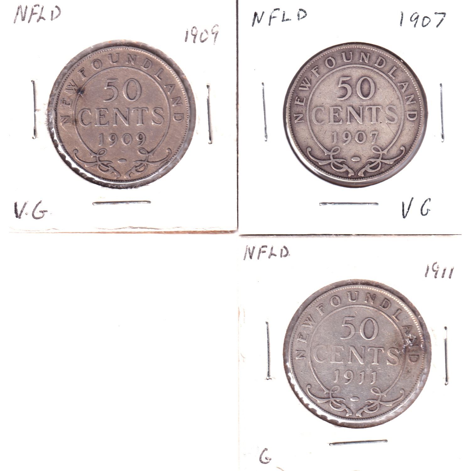 1907,1909 & 1911 Newfoundland 50-cents. 3pcs