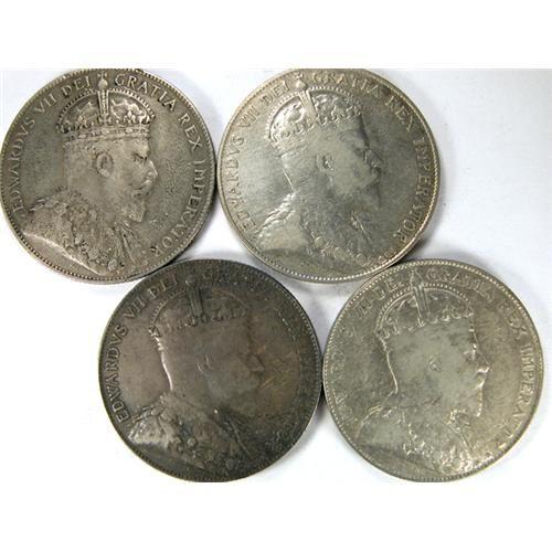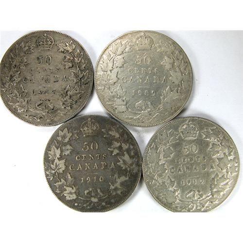 Canada Fifty Cents 1907, 1909 and 1910 Victorian Leaves two pieces. Total four pale to light-medium toned pieces, Fine to VF-EF, and all with problems