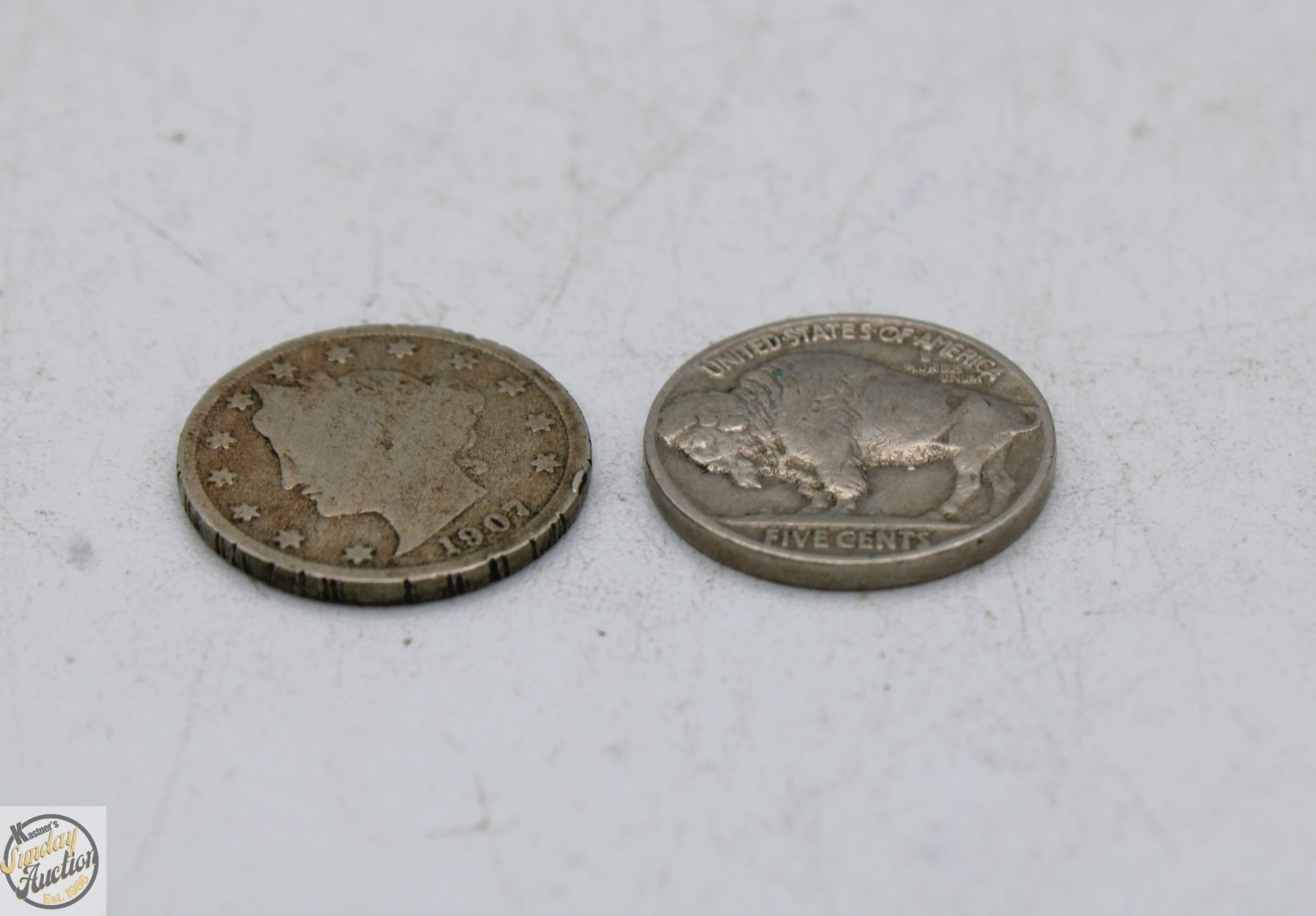 1907/1936 LOLT OF 2 OLD USA 5 CENTS COINS