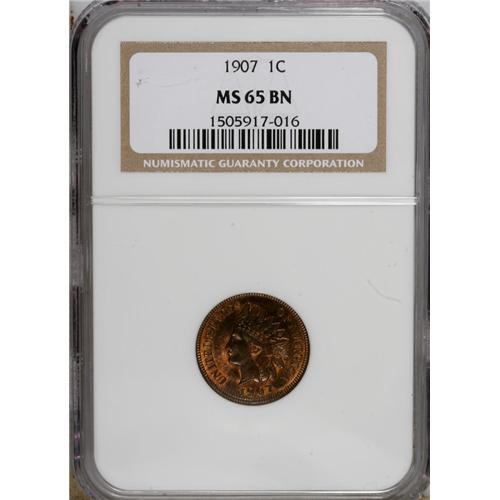 <B>1907 1C MS65 Brown NGC.</B></I> NGC Census: (44/1). PCGS Population (4/0). Mintage: 108,138,616. Numismedia Wsl. Price: $85. (#2226)<BR><BR><b>Shipping:</b> Coins & Currency (<a target="_blank" href="http://www.heritageauctions.com/common/shipping.php">view shipping information</a>)