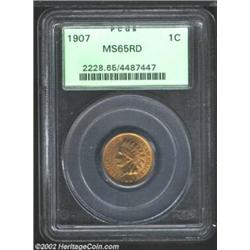 1907 1C MS65 Red PCGS. Fully red with lustrous surfaces and sharp strike.From the Trane Collection..