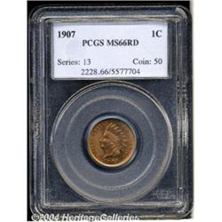 <B>1907<1C> MS66 Red PCGS.</B></I> Generally well struck, save for the lowest hair curls and the feathertips. Vibrant luster radiates from the copper-gold surfaces that are minimally abraded. A couple of flecks are noted in the lower part of the shield. <BR><BR><B>Important notice:</B> Heritage usually auctions material at the rate of 200-250 lots per hour. On some occasions eBay Live bid software or the Internet may not be able to keep up with the pace of the auction. We recommend placing a realistic absentee bid now as insurance to avoid disappointment. Occasionally the auctioneer may eliminate or reject an eBay Live bid, and the auctioneer may also reopen a lot after the close of the eBay live bidding (usually because we missed an audience bid), and may reject your bid even if it shows you as the winning bidder. By bidding via eBay Live, you agree that Heritage may award the lot to another bidder at its sole discretion under the circumstances described above or any other reasonable circumstances. Since eBay bids are not shown to us until we open the lot on the floor, we treat those bids just like floor bids. In most cases the floor responds before the eBay bid is presented to us, due to Internet lag time, so for consistency we have made it a policy that floor bids are always considered first over tie eBay live bids. Also please note that all Heritage lots purchased through eBay Live carry a 20% Buyer's Premium. Please make sure you read the Terms and Conditions before you bid. </span></font></tr></table></td></tr></table>