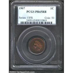 1907 1C PR65 Red and Brown PCGS. Nicely reflective in the fields, the surfaces are toned just a few.