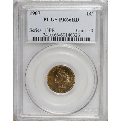 1907 1C PR66 Red PCGS. Bright gold color, with a blush