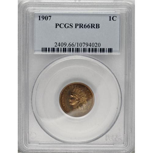 <B>1907 1C PR66 Red and Brown PCGS.</B></I> A lovely example that approaches full red status, this piece shows brilliant luster with only slight color mellowing at the reverse rim and in the area around LIBERTY. Visible carbon is minimal, and this Premium Gem proof should prove to be a bargain and a delightful acquisition for some forthright bidder. Population: 11 in 66 Red and Brown, 3 finer (12/06).<BR><BR><b>Shipping:</b> Coins & Currency (<a target="_blank" href="http://www.heritageauctions.com/common/shipping.php">view shipping information</a>)