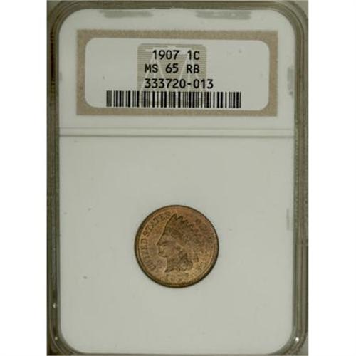<B>1907 1C MS65 Red and Brown NGC.</B></I> NGC Census: (177/6). PCGS Population (85/2). Mintage: 108,138,616. Numismedia Wsl. Price for NGC/PCGS coin in MS65: $128. (#2227)<BR><BR><B>Coin Engraver:</B> James B. Longacre<BR><BR><b>Shipping:</b> Coins & Currency (<a target="_blank" href="http://www.heritageauctions.com/common/shipping.php">view shipping information</a>)