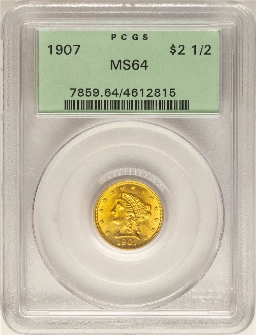 1907 $2 1/2 Liberty Head Quarter Eagle Gold Coin MS64 Old Green Holder