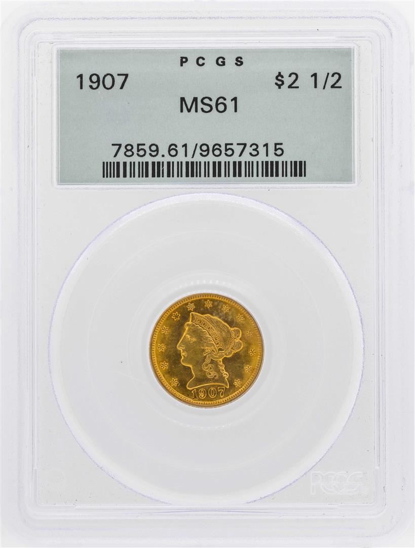 One 1907 $2 1/2 Liberty Head Quarter Eagle Gold Coin PCGS MS62. PCGS Graded.