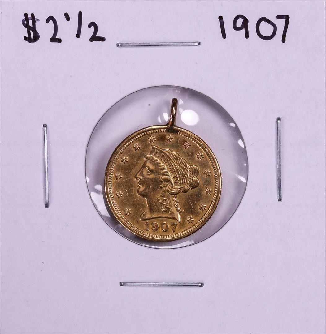 One 1907 $2 1/2 Liberty Head Quarter Eagle Gold Coin in Bezel.
