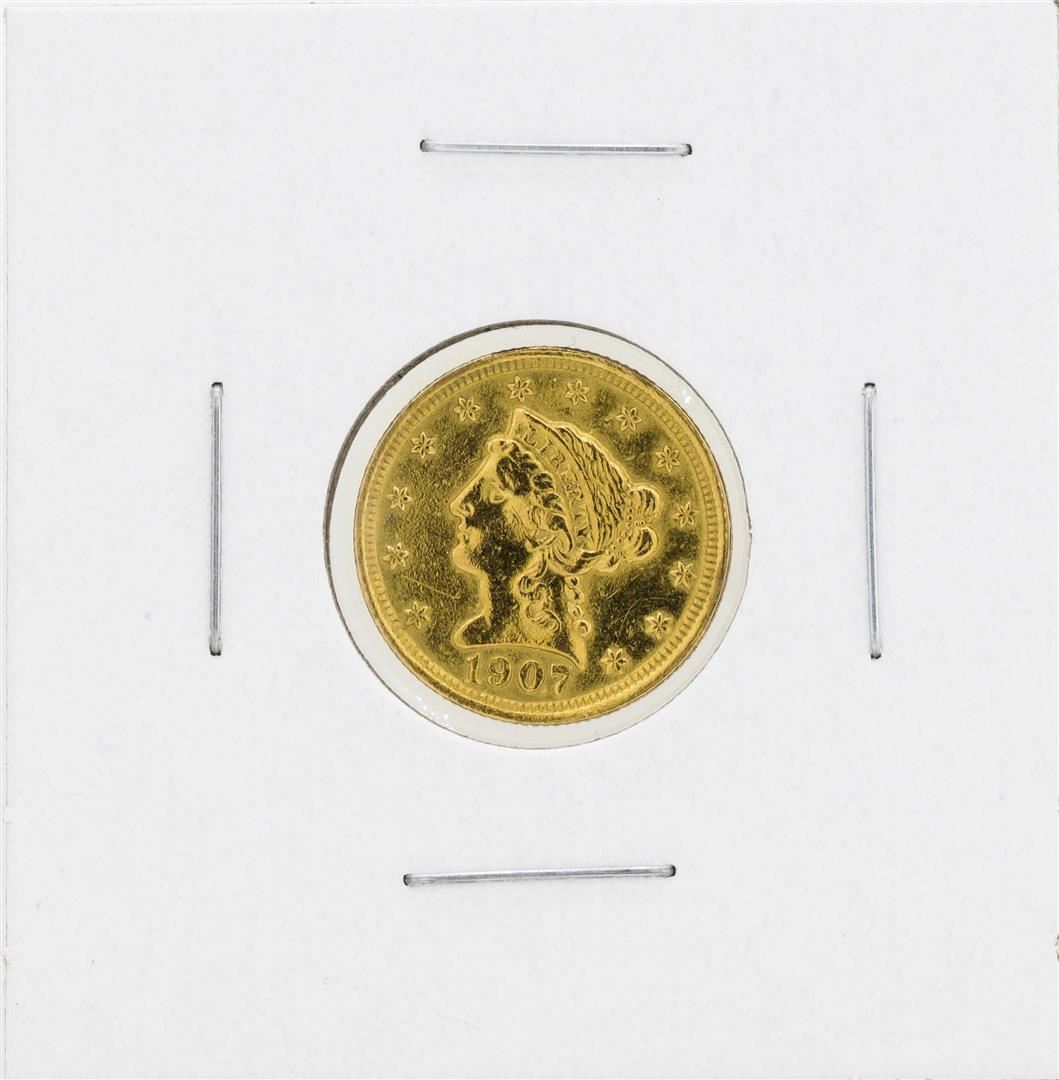 One 1907 $2 1/2 Liberty Head Quarter Eagle Gold Coin.