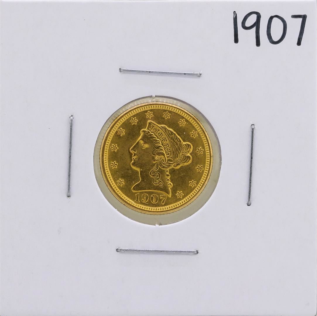 One 1907 $2 1/2 Liberty Head Quarter Eagle Gold Coin.
