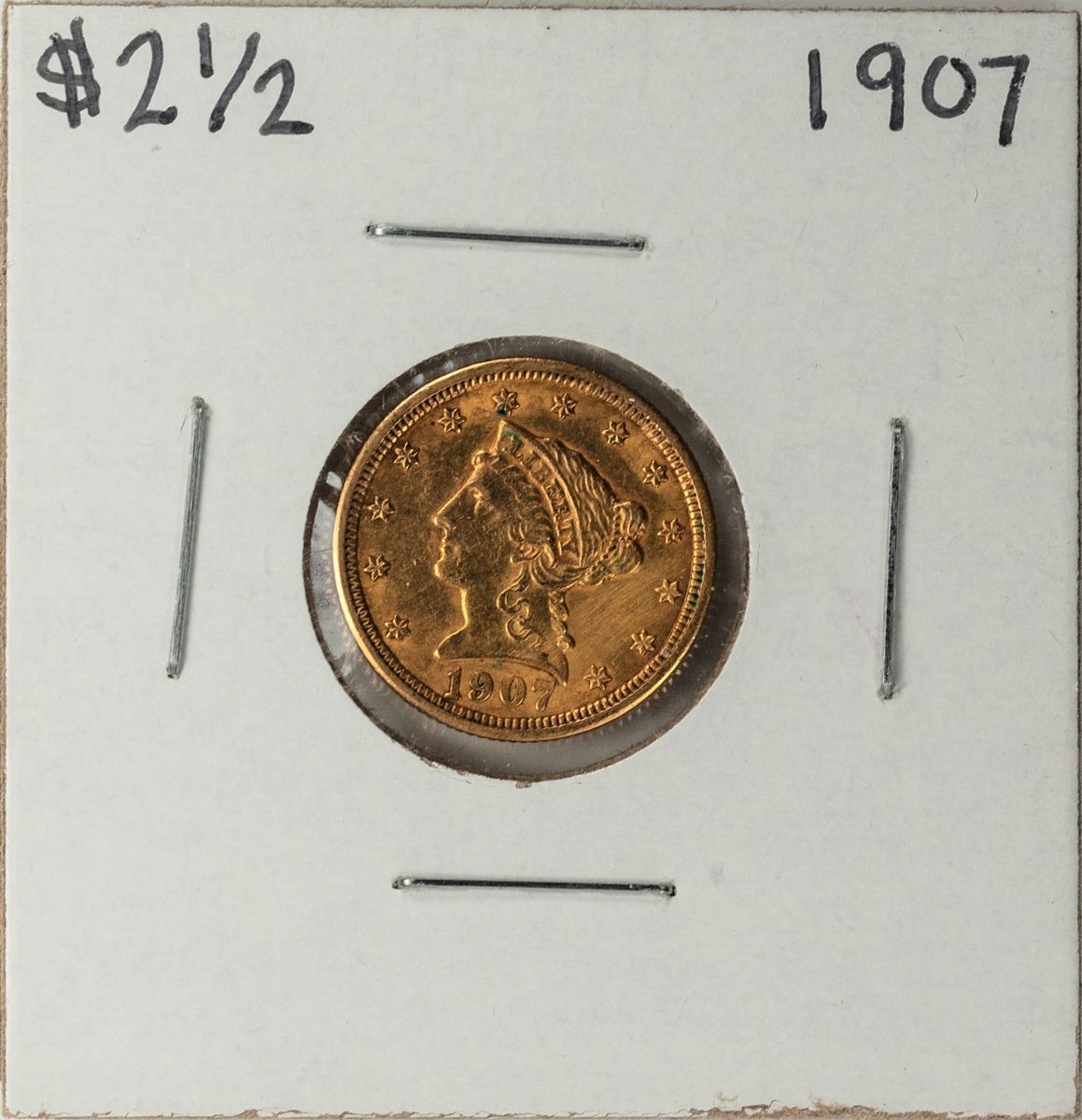 One 1907 $2 1/2 Liberty Head Quarter Eagle Gold Coin.