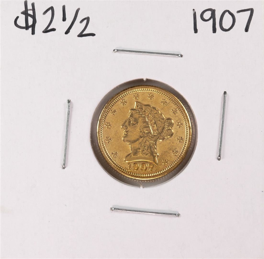 One 1907 $2 1/2 Liberty Head Quarter Eagle Gold Coin.