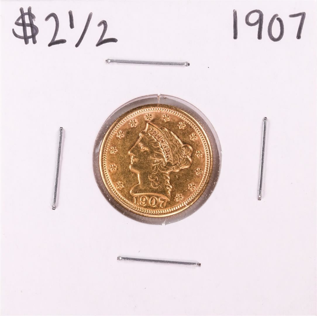 One 1907 $2 1/2 Liberty Head Quarter Eagle Gold Coin.
