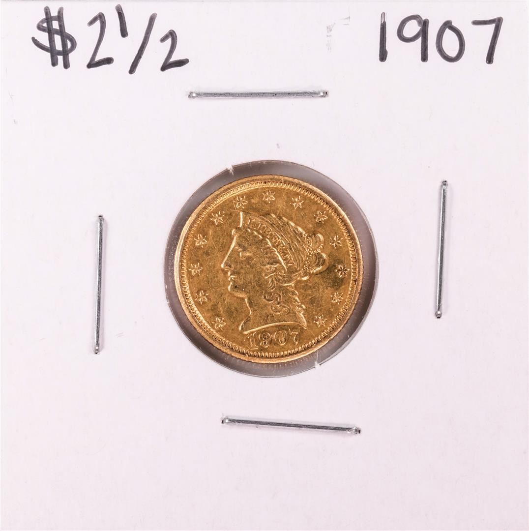 One 1907 $2 1/2 Liberty Head Quarter Eagle Gold Coin.