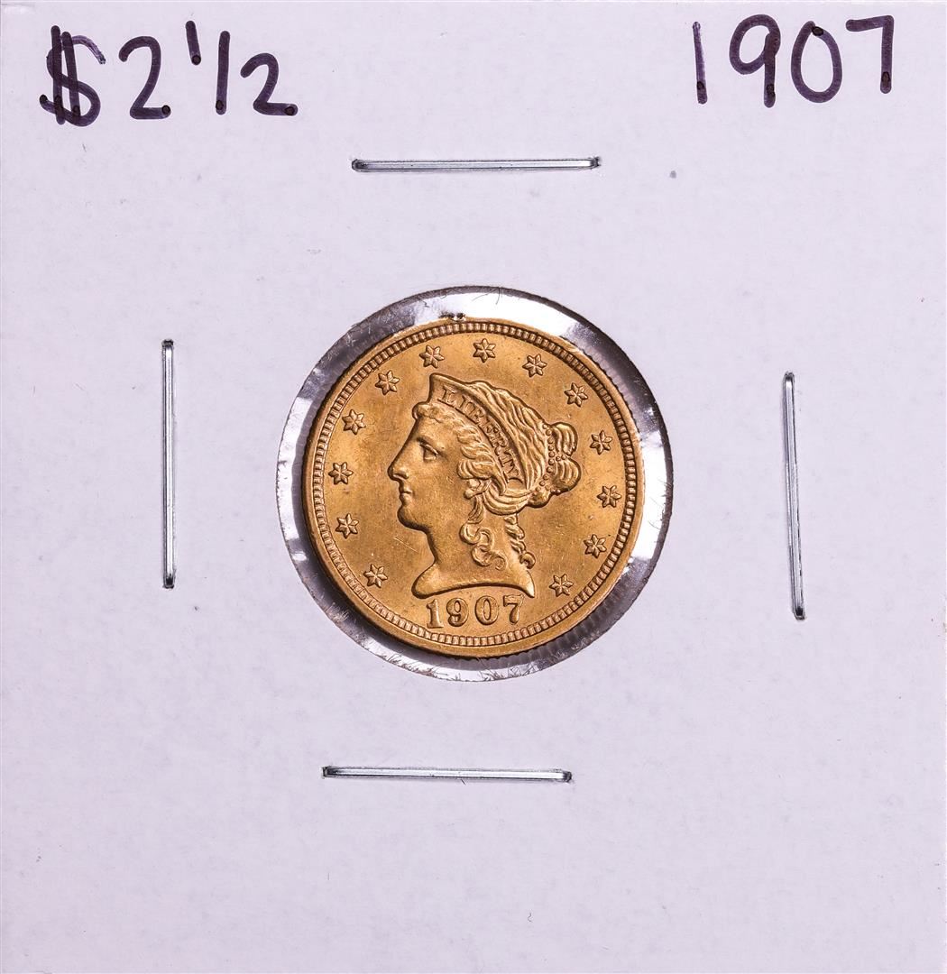 One 1907 $2 1/2 Liberty Head Quarter Eagle Gold Coin.
