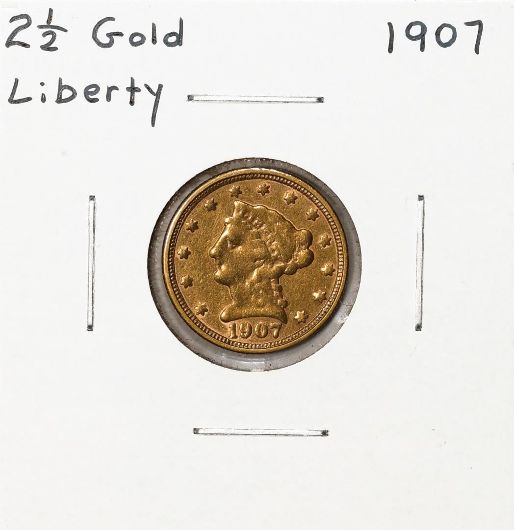 One 1907 $2 1/2 Liberty Head Quarter Eagle Gold Coin.