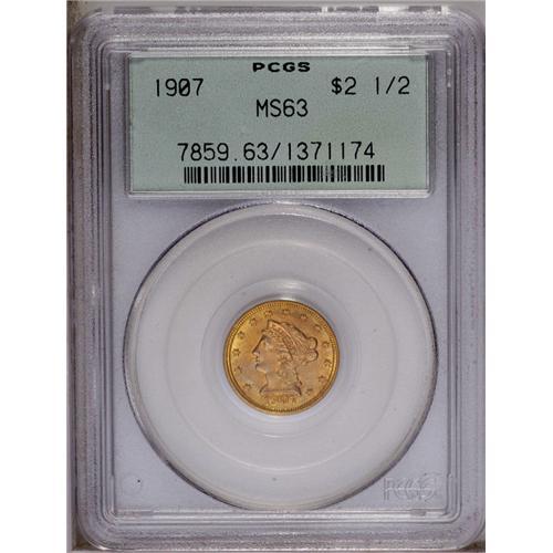 1907 $2 1/2 MS63 PCGS. This older holder gold type coi 1907[$2 1/2] MS63 PCGS.