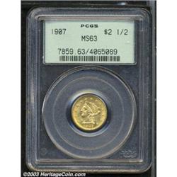 <TABLE cellSpacing=0 cellPadding=0 width="100%" bgColor=#000000 border=0><TBODY><TR><TD width="100%"><TABLE cellSpacing=1 cellPadding=3 width="100%" border=0><TBODY><TR><TD width="100%" bgColor=#79735c><FONT face=arial color=#ffffff size=3><B>Description</B> </FONT></TD></TR><TR><TD width="100%" bgColor=#ffffff><FONT face=arial size=2><B>1907 $2 1/2 MS63 PCGS.</B></I> Radiant surfaces with isolated field marks between Liberty's nose and star 4. </FONT></TD></TR></TBODY></TABLE></TD></TR></TBODY></TABLE><BR><A name=PricesRealized></A><TABLE cellSpacing=0 cellPadding=0 width="100%" bgColor=#000000 border=0><TBODY><TR><TD width="100%"><TABLE cellSpacing=1 cellPadding=3 width="100%" border=0><TBODY><TR><TD width="100%" bgColor=#79735c><A name=PR><FONT face=arial color=#ffffff size=3><B>Previous Prices from Heritage Auctions</B> </FONT></A></TD></TR><TR><TD bgColor=#f6f6ed><TABLE cellSpacing=0 cellPadding=0 width="100%" border=1><TBODY><TR><TD align=middle width="33%"><B>Date</B></TD><TD align=middle width="33%"><B>Service</B></TD><TD align=middle width="33%"><B>Price</B></TD></TR><TR bgColor=whitesmoke><TD width="33%"><B>02/24/1995</B></TD><TD width="33%">PCGS</TD><TD width="33%">$825.00</TD></TR><TR bgColor=whitesmoke><TD width="33%"><B>03/01/2003</B></TD><TD width="33%">PCGS</TD><TD width="33%">$655.50</TD></TR><TR bgColor=whitesmoke><TD width="33%"><B>01/11/2003</B></TD><TD width="33%">PCGS</TD><TD width="33%">$603.75</TD></TR><TR bgColor=whitesmoke><TD width="33%"><B>06/01/2001</B></TD><TD width="33%">PCGS</TD><TD width="33%">$552.00</TD></TR><TR bgColor=whitesmoke><TD width="33%"><B>12/01/1992</B></TD><TD width="33%">PCGS</TD><TD width="33%">$1,650.00</TD></TR><TR bgColor=whitesmoke><TD width="33%"><B>05/01/1990</B></TD><TD width="33%">PCGS</TD><TD width="33%">$1,375.00</TD></TR><TR bgColor=whitesmoke><TD width="33%"><B>10/07/2001</B></TD><TD width="33%">NGC</TD><TD width="33%">$483.00</TD></TR><TR bgColor=whitesmoke><TD width="33%"><B>01/09/1999</B></TD><TD width="33%">NGC</TD><TD width="33%">$715.00</TD></TR><TR bgColor=whitesmoke><TD width="33%"><B>06/10/2000</B></TD><TD width="33%">NGC</TD><TD width="33%">$603.75</TD></TR><TR bgColor=whitesmoke><TD width="33%"><B>08/05/2001</B></TD><TD width="33%">PCGS</TD><TD width="33%">$575.00</TD></TR><TR bgColor=whitesmoke><TD width="33%"><B>02/11/2000</B></TD><TD width="33%">PCGS</TD><TD width="33%">$575.00</TD></TR><TR bgColor=whitesmoke><TD width="33%"><B>08/06/2003</B></TD><TD width="33%">ANACS</TD><TD width="33%">$414.00</TD></TR></TBODY></TABLE></TD></TR><TR><TD bgColor=#ffffff><FONT face=arial size=1 ?>PLEASE NOTE: All prices realized reflect the final hammer price PLUS the buyer's premium in auctions that charge a buyer's premium. Each item has a notation at the top of the listing indicating whether that lot included a buyer's premium. Example: A item that sells with a final hammer price of $100 and a 20% buyer's premium will display with a price realized of $120. All information listed is intended to be as accurate as possible, but errors are possible. Please use this guide carefully and inform us of any inaccuracies. </FONT></TD></TR></TBODY></TABLE></TD></TR></TBODY></TABLE><BR><TABLE cellSpacing=0 cellPadding=0 width="100%" bgColor=#000000 border=0><TBODY><TR><TD width="100%"><TABLE cellSpacing=1 cellPadding=3 width="100%" border=0><TBODY><TR><TD width="100%" bgColor=#79735c colSpan=6><FONT face=arial color=#ffffff size=3><B>Price Guide*</B> </FONT></TD></TR><TR bgColor=#f6f6ed><TD align=middle><B>Grade</B> </TD><TD align=middle><B>Coin World<BR>(Trends)</B> </TD><TD align=middle><B>Numismedia<BR>Retail</B> </TD><TD align=middle><B>Numismedia<BR>Wholesale</B> </TD><TD align=middle><B>Coin<BR>Universe</B> </TD><TD align=middle><B>Heritage<BR>Value Index</B> </TD></TR><TR bgColor=#ffffff><TD align=middle>62</TD><TD align=right>$400.00</TD><TD align=right>$426.00</TD><TD align=right>$355.00</TD><TD align=right>$425.00</TD><TD align=right>$301.88</TD></TR><TR style="FONT-WEIGHT: bold" bgColor=#cccfdd><TD align=middle>63</TD><TD align=right>$650.00</TD><TD align=right>$810.00</TD><TD align=right>$675.00</TD><TD align=right>$840.00</TD><TD align=right>$577.38</TD></TR><TR bgColor=#ffffff><TD align=middle>64</TD><TD align=right>$775.00</TD><TD align=right>$920.00</TD><TD align=right>$735.00</TD><TD align=right>$920.00</TD><TD align=right>$633.00</TD></TR><TR bgColor=#ffffff><TD colSpan=6><FONT size=1>*All information listed is intended to be as accurate as possible, but errors are possible. No item may be returned or refused based on this information which is provided as a service to our customers. You should contact each pricing source directly to determine the accuracy of this information. </FONT></TD></TR></TBODY></TABLE></TD></TR></TBODY></TABLE><BR><TABLE cellSpacing=0 cellPadding=0 width="100%" bgColor=#000000 border=0><TBODY><TR><TD width="100%"><TABLE cellSpacing=1 cellPadding=3 width="100%" border=0><TBODY><TR><TD width="100%" bgColor=#79735c><FONT face=arial color=#ffffff size=3><B>Population Guide</B> </FONT></TD></TR><TR bgColor=#ffffff><TD align=middle><!-- Begin Output of Population Grid--><TABLE cellSpacing=0 cellPadding=0 width="100%" border=0><TBODY><TR><TD vAlign=center><TABLE cellSpacing=0 width="100%" border=1 cellsadding="3"><TBODY><TR><TD vAlign=center><TABLE cellSpacing=0 cellPadding=3 width="100%" border=1><TBODY><TR><TD vAlign=center align=middle bgColor=#f0f1e8 colSpan=2 <CENTER><FONT face=Arial size=2><B>PCGS Pop </B></FONT><CENTER></CENTER></TD><TD vAlign=center align=middle bgColor=#f0f1e8 colSpan=2><CENTER><FONT face=Arial size=2><B>NGC Pop</B></CENTER></FONT></TD></TR><TR><TD vAlign=center><FONT face=Arial size=2>(63)</FONT> </TD><TD vAlign=center align=right><FONT face=Arial size=2>1846</FONT> </TD><TD vAlign=center><FONT face=Arial size=2>(63)</FONT> </TD><TD vAlign=center align=right><FONT face=Arial size=2>964</FONT> </TD></TR><TR><TD vAlign=center><FONT face=Arial size=2>(>63)</FONT> </TD><TD vAlign=cent