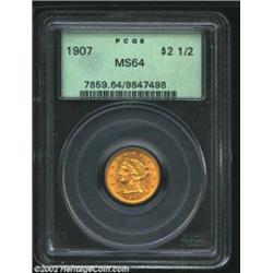 1907 $2 1/2 MS64 PCGS. Breen-6329. The base of the 7 in the date is lightly repunched. A razor-sharp