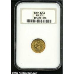 <TABLE cellSpacing=0 cellPadding=0 width="100%" bgColor=#000000 border=0><TBODY><TR><TD width="100%"><TABLE cellSpacing=1 cellPadding=3 width="100%" border=0><TBODY><TR><TD width="100%" bgColor=#79735c><FONT face=arial color=#ffffff size=3><B>Description</B> </FONT></TD></TR><TR><TD width="100%" bgColor=#ffffff><FONT face=arial size=2><B>1907 $2 1/2 MS65 NGC.</B></I> Well struck with vibrant surfaces that display rich golden color, shimmering luster, and outstanding surface preservation. Traces of reddish patina, on the obverse, only serve to enhance the already splendid appearance. </FONT></TD></TR></TBODY></TABLE></TD></TR></TBODY></TABLE><BR><A name=PricesRealized></A><TABLE cellSpacing=0 cellPadding=0 width="100%" bgColor=#000000 border=0><TBODY><TR><TD width="100%"><TABLE cellSpacing=1 cellPadding=3 width="100%" border=0><TBODY><TR><TD width="100%" bgColor=#79735c><A name=PR><FONT face=arial color=#ffffff size=3><B>Previous Prices from Heritage Auctions</B> </FONT></A></TD></TR><TR><TD bgColor=#f6f6ed><TABLE cellSpacing=0 cellPadding=0 width="100%" border=1><TBODY><TR><TD align=middle width="33%"><B>Date</B></TD><TD align=middle width="33%"><B>Service</B></TD><TD align=middle width="33%"><B>Price</B></TD></TR><TR bgColor=whitesmoke><TD width="33%"><B>03/01/2000</B></TD><TD width="33%">PCGS</TD><TD width="33%">$1,236.00</TD></TR><TR bgColor=whitesmoke><TD width="33%"><B>03/01/1996</B></TD><TD width="33%">PCGS</TD><TD width="33%">$1,980.00</TD></TR><TR bgColor=whitesmoke><TD width="33%"><B>01/01/1996</B></TD><TD width="33%">PCGS</TD><TD width="33%">$1,870.00</TD></TR><TR bgColor=whitesmoke><TD width="33%"><B>11/01/1998</B></TD><TD width="33%">PCGS</TD><TD width="33%">$1,840.00</TD></TR><TR bgColor=whitesmoke><TD width="33%"><B>11/01/1998</B></TD><TD width="33%">PCGS</TD><TD width="33%">$1,495.00</TD></TR><TR bgColor=whitesmoke><TD width="33%"><B>09/10/1997</B></TD><TD width="33%">PCGS</TD><TD width="33%">$1,870.00</TD></TR><TR bgColor=whitesmoke><TD width="33%"><B>06/01/2000</B></TD><TD width="33%">NGC</TD><TD width="33%">$1,063.00</TD></TR><TR bgColor=whitesmoke><TD width="33%"><B>05/02/1997</B></TD><TD width="33%">NGC</TD><TD width="33%">$1,815.00</TD></TR><TR bgColor=whitesmoke><TD width="33%"><B>03/02/2000</B></TD><TD width="33%">NGC</TD><TD width="33%">$1,322.50</TD></TR><TR bgColor=whitesmoke><TD width="33%"><B>03/04/1994</B></TD><TD width="33%">NGC</TD><TD width="33%">$2,200.00</TD></TR><TR bgColor=whitesmoke><TD width="33%"><B>12/01/1998</B></TD><TD width="33%">NGC</TD><TD width="33%">$1,650.00</TD></TR><TR bgColor=whitesmoke><TD width="33%"><B>09/28/2002</B></TD><TD width="33%">PCGS</TD><TD width="33%">$1,150.00</TD></TR><TR bgColor=whitesmoke><TD width="33%"><B>02/01/2001</B></TD><TD width="33%">PCGS</TD><TD width="33%">$1,035.00</TD></TR><TR bgColor=whitesmoke><TD width="33%"><B>06/08/2002</B></TD><TD width="33%">PCGS</TD><TD width="33%">$1,006.25</TD></TR><TR bgColor=whitesmoke><TD width="33%"><B>05/31/2001</B></TD><TD width="33%">PCGS</TD><TD width="33%">$1,040.75</TD></TR><TR bgColor=whitesmoke><TD width="33%"><B>05/06/2000</B></TD><TD width="33%">PCGS</TD><TD width="33%">$1,121.25</TD></TR><TR bgColor=whitesmoke><TD width="33%"><B>03/21/1998</B></TD><TD width="33%">PCGS</TD><TD width="33%">$2,012.50</TD></TR><TR bgColor=whitesmoke><TD width="33%"><B>10/01/1993</B></TD><TD width="33%">PCGS</TD><TD width="33%">$2,447.50</TD></TR><TR bgColor=whitesmoke><TD width="33%"><B>05/06/1994</B></TD><TD width="33%">PCGS</TD><TD width="33%">$2,310.00</TD></TR><TR bgColor=whitesmoke><TD width="33%"><B>02/13/1999</B></TD><TD width="33%">PCGS</TD><TD width="33%">$1,760.00</TD></TR><TR bgColor=whitesmoke><TD width="33%"><B>02/11/2000</B></TD><TD width="33%">PCGS</TD><TD width="33%">$1,150.00</TD></TR><TR bgColor=whitesmoke><TD width="33%"><B>09/26/1998</B></TD><TD width="33%">PCGS</TD><TD width="33%">$2,300.00</TD></TR><TR bgColor=whitesmoke><TD width="33%"><B>05/01/1990</B></TD><TD width="33%">ANACS</TD><TD width="33%">$4,675.00</TD></TR></TBODY></TABLE></TD></TR><TR><TD bgColor=#ffffff><FONT face=arial size=1 ?>PLEASE NOTE: All prices realized reflect the final hammer price PLUS the buyer's premium in auctions that charge a buyer's premium. Each item has a notation at the top of the listing indicating whether that lot included a buyer's premium. Example: A item that sells with a final hammer price of $100 and a 20% buyer's premium will display with a price realized of $120. All information listed is intended to be as accurate as possible, but errors are possible. Please use this guide carefully and inform us of any inaccuracies. </FONT></TD></TR></TBODY></TABLE></TD></TR></TBODY></TABLE><BR><TABLE cellSpacing=0 cellPadding=0 width="100%" bgColor=#000000 border=0><TBODY><TR><TD width="100%"><TABLE cellSpacing=1 cellPadding=3 width="100%" border=0><TBODY><TR><TD width="100%" bgColor=#79735c colSpan=6><FONT face=arial color=#ffffff size=3><B>Price Guide*</B> </FONT></TD></TR><TR bgColor=#f6f6ed><TD align=middle><B>Grade</B> </TD><TD align=middle><B>Coin World<BR>(Trends)</B> </TD><TD align=middle><B>Numismedia<BR>Retail</B> </TD><TD align=middle><B>Numismedia<BR>Wholesale</B> </TD><TD align=middle><B>Coin<BR>Universe</B> </TD><TD align=middle><B>Heritage<BR>Value Index</B> </TD></TR><TR bgColor=#ffffff><TD align=middle>64</TD><TD align=right>$775.00</TD><TD align=right>$920.00</TD><TD align=right>$735.00</TD><TD align=right>$920.00</TD><TD align=right>$633.00</TD></TR><TR style="FONT-WEIGHT: bold" bgColor=#cccfdd><TD align=middle>65</TD><TD align=right>---</TD><TD align=right>---</TD><TD align=right>$1,180.00</TD><TD align=right>$1,575.00</TD><TD align=right>$1,101.83</TD></TR><TR bgColor=#ffffff><TD align=middle>66</TD><TD align=right>---</TD><TD align=right>---</TD><TD align=right>$1,760.00</TD><TD align=right>$2,200.00</TD><TD align=right>$1,781.00</TD></TR><TR bgColor=#ffffff><TD colSpan=6><FONT size=1>*All information listed is intended to be as accurate as possible, but errors are p