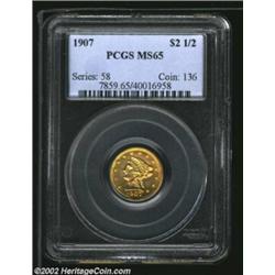 1907 $2 1/2 MS65 PCGS. Needle-sharp and flashy with immaculate surfaces and bright lemon-gold color.