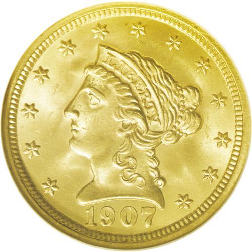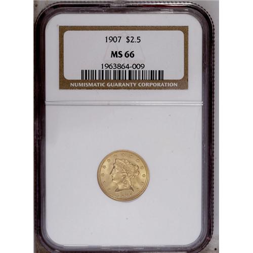1907 $2 1/2 MS66 NGC. A bright, shimmering Gem with pi 1907[$2 1/2] MS66 NGC.