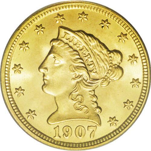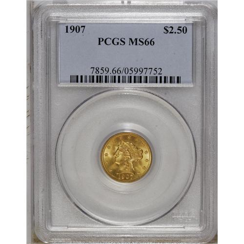 <B>1907 $2 1/2 MS66 PCGS.</B></I> A magnificent peach and lime-gold Premium Gem. Virtually perfect, save for a hint of incompleteness of strike on the forehead curls and the eagle's left (facing) leg. The 1907 ends the longest-lived gold type, produced from 1840 to 1907 without significant alloy or design modifications.<BR><BR><b>Shipping:</b> Coin/Currency (<a target="_blank" href="http://www.heritageauctions.com/common/shipping.php">view shipping information</a>)