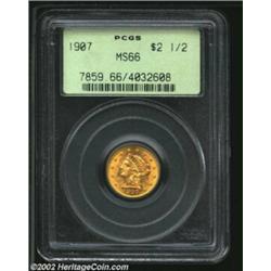 1907 $2 1/2 MS66 PCGS. The surfaces have intermingled yellow-green and orange color. The obverse is.