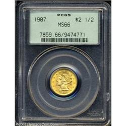 <table><tr><td><TABLE cellSpacing=0 cellPadding=0 width="100%" bgColor=#000000 border=0><TBODY> <TR><TD width="100%"><TABLE cellSpacing=1 cellPadding=3 width="100%" border=0><TBODY><TR><TD width="100%" bgColor=#79735c><FONT face=arial color=#ffffff size=3><B>Description</B> </FONT></TD></TR><TR><TD width="100%" bgColor=#ffffff><FONT face=arial size=2><B>1907 $2 1/2 MS66 PCGS.</B></I> All of the features are fully struck, except for the B in LIBERTY, and the radiant, distraction-free surfaces of this premium Gem display satiny luster and the near-absence of blemishes. Bright orange-gold is the prevailing color, while subtle hints of pink are barely discernible near the centers. A superior representative of this issue, the final year for the Coronet Head type of quarter eagle. </FONT></TD></TR></TBODY></TABLE></TD></TR></TBODY></TABLE><BR><A name=PricesRealized></A><TABLE cellSpacing=0 cellPadding=0 width="100%" bgColor=#000000 border=0><TBODY><TR><TD width="100%"><TABLE cellSpacing=1 cellPadding=3 width="100%" border=0><TBODY><TR><TD width="100%" bgColor=#79735c><A name=PR><FONT face=arial color=#ffffff size=3><B>Previous Prices from Heritage Auctions</B> </FONT></A></TD></TR><TR><TD bgColor=#f6f6ed><TABLE cellSpacing=0 cellPadding=0 width="100%" border=1><TBODY><TR><TD align=middle width="33%"><B>Date</B></TD><TD align=middle width="33%"><B>Service</B></TD><TD align=middle width="33%"><B>Price</B></TD></TR><TR bgColor=whitesmoke><TD width="33%"><B>11/05/2002</B></TD><TD width="33%">NGC</TD><TD width="33%">$1,610.00</TD></TR><TR bgColor=whitesmoke><TD width="33%"><B>03/27/2001</B></TD><TD width="33%">PCGS</TD><TD width="33%">$1,650.00</TD></TR><TR bgColor=whitesmoke><TD width="33%"><B>09/20/2003</B></TD><TD width="33%">PCGS</TD><TD width="33%">$2,070.00</TD></TR><TR bgColor=whitesmoke><TD width="33%"><B>11/23/2002</B></TD><TD width="33%">PCGS</TD><TD width="33%">$2,300.00</TD></TR><TR bgColor=whitesmoke><TD width="33%"><B>09/28/2002</B></TD><TD width="33%">PCGS</TD><TD width="33%">$1,955.00</TD></TR><TR bgColor=whitesmoke><TD width="33%"><B>09/28/2002</B></TD><TD width="33%">PCGS</TD><TD width="33%">$1,840.00</TD></TR><TR bgColor=whitesmoke><TD width="33%"><B>02/23/2001</B></TD><TD width="33%">PCGS</TD><TD width="33%">$1,610.00</TD></TR><TR bgColor=whitesmoke><TD width="33%"><B>11/17/2000</B></TD><TD width="33%">NGC</TD><TD width="33%">$1,437.50</TD></TR><TR bgColor=whitesmoke><TD width="33%"><B>02/11/2000</B></TD><TD width="33%">NGC</TD><TD width="33%">$1,610.00</TD></TR><TR bgColor=whitesmoke><TD width="33%"><B>09/18/1996</B></TD><TD width="33%">PCGS</TD><TD width="33%">$2,310.00</TD></TR><TR bgColor=whitesmoke><TD width="33%"><B>06/01/1996</B></TD><TD width="33%">NGC</TD><TD width="33%">$2,310.00</TD></TR><TR bgColor=whitesmoke><TD width="33%"><B>03/16/1996</B></TD><TD width="33%">PCGS</TD><TD width="33%">$3,300.00</TD></TR><TR bgColor=whitesmoke><TD width="33%"><B>05/06/1994</B></TD><TD width="33%">PCGS</TD><TD width="33%">$2,970.00</TD></TR><TR bgColor=whitesmoke><TD width="33%"><B>06/01/2001</B></TD><TD width="33%">PCGS</TD><TD width="33%">$1,668.00</TD></TR><TR bgColor=whitesmoke><TD width="33%"><B>08/09/2000</B></TD><TD width="33%">PCGS</TD><TD width="33%">$1,495.00</TD></TR><TR bgColor=whitesmoke><TD width="33%"><B>10/01/1990</B></TD><TD width="33%">PCGS</TD><TD width="33%">$6,325.00</TD></TR><TR bgColor=whitesmoke><TD width="33%"><B>02/01/1991</B></TD><TD width="33%">PCGS</TD><TD width="33%">$5,610.00</TD></TR><TR bgColor=whitesmoke><TD width="33%"><B>05/01/1991</B></TD><TD width="33%">PCGS</TD><TD width="33%">$4,180.00</TD></TR><TR bgColor=whitesmoke><TD width="33%"><B>01/01/1999</B></TD><TD width="33%">PCGS</TD><TD width="33%">$3,450.00</TD></TR><TR bgColor=whitesmoke><TD width="33%"><B>01/01/1995</B></TD><TD width="33%">PCGS</TD><TD width="33%">$3,355.00</TD></TR><TR bgColor=whitesmoke><TD width="33%"><B>06/01/1998</B></TD><TD width="33%">PCGS</TD><TD width="33%">$2,530.00</TD></TR><TR bgColor=whitesmoke><TD width="33%"><B>08/01/1999</B></TD><TD width="33%">PCGS</TD><TD width="33%">$2,197.00</TD></TR><TR bgColor=whitesmoke><TD width="33%"><B>08/01/1991</B></TD><TD width="33%">NGC</TD><TD width="33%">$3,520.00</TD></TR><TR bgColor=whitesmoke><TD width="33%"><B>11/01/1995</B></TD><TD width="33%">NGC</TD><TD width="33%">$2,530.00</TD></TR></TBODY></TABLE></TD></TR><TR><TD bgColor=#ffffff><FONT face=arial size=1 ?>PLEASE NOTE: All prices realized reflect the final hammer price PLUS the buyer's premium in auctions that charge a buyer's premium. Each item has a notation at the top of the listing indicating whether that lot included a buyer's premium. Example: A item that sells with a final hammer price of $100 and a 20% buyer's premium will display with a price realized of $120. All information listed is intended to be as accurate as possible, but errors are possible. Please use this guide carefully and inform us of any inaccuracies. </FONT></TD></TR></TBODY></TABLE></TD></TR></TBODY></TABLE><BR><TABLE cellSpacing=0 cellPadding=0 width="100%" bgColor=#000000 border=0><TBODY><TR><TD width="100%"><TABLE cellSpacing=1 cellPadding=3 width="100%" border=0><TBODY><TR><TD width="100%" bgColor=#79735c colSpan=6><FONT face=arial color=#ffffff size=3><B>Price Guide*</B> </FONT></TD></TR><TR bgColor=#f6f6ed><TD align=middle><B>Grade</B> </TD><TD align=middle><B>Coin World<BR>(Trends)</B> </TD><TD align=middle><B>Numismedia<BR>Retail</B> </TD><TD align=middle><B>Numismedia<BR>Wholesale</B> </TD><TD align=middle><B>Coin<BR>Universe</B> </TD><TD align=middle><B>Heritage<BR>Value Index</B> </TD></TR><TR bgColor=#ffffff><TD align=middle>65</TD><TD align=right>---</TD><TD align=right>---</TD><TD align=right>$1,180.00</TD><TD align=right>$1,525.00</TD><TD align=right>$1,072.83</TD></TR><TR style="FONT-WEIGHT: bold" bgColor=#cccfdd><TD align=middle>66</TD><TD align=right>---</TD><TD align=right>---</TD><TD align=right>$1,760.00</TD><TD align=right>$2,350.00</TD><TD align=right>$1,739.33</TD></TR><TR 