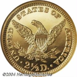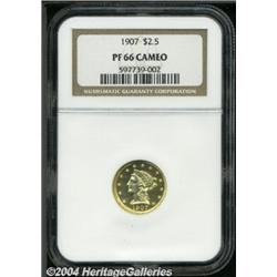 <B>1907<$2 1/2> PR66 Cameo NGC.</B></I> The 1907 quarter eagle is quite scarce in proof quality, although is not as rare as similarly dated proof gold coins of larger denominations. The issue is, however, in considerable demand as the final year for this design, a factor that gives this date the appearance of rarity. Of course, we are talking proof gold, which is rare regardless of what issue is being considered. This Gem Cameo proof has exceptional yellow-gold color with deeply mirrored fields and light cameo contrast. A pleasing example for your consideration. <BR><BR><B>Important notice:</B> Heritage usually auctions material at the rate of 200-250 lots per hour. On some occasions eBay Live bid software or the Internet may not be able to keep up with the pace of the auction. We recommend placing a realistic absentee bid now as insurance to avoid disappointment. Occasionally the auctioneer may eliminate or reject an eBay Live bid, and the auctioneer may also reopen a lot after the close of the eBay live bidding (usually because we missed an audience bid), and may reject your bid even if it shows you as the winning bidder. By bidding via eBay Live, you agree that Heritage may award the lot to another bidder at its sole discretion under the circumstances described above or any other reasonable circumstances. Since eBay bids are not shown to us until we open the lot on the floor, we treat those bids just like floor bids. In most cases the floor responds before the eBay bid is presented to us, due to Internet lag time, so for consistency we have made it a policy that floor bids are always considered first over tie eBay live bids. Also please note that all Heritage lots purchased through eBay Live carry a 20% Buyer's Premium. Please make sure you read the Terms and Conditions before you bid. </span></font></tr></table></td></tr></table>