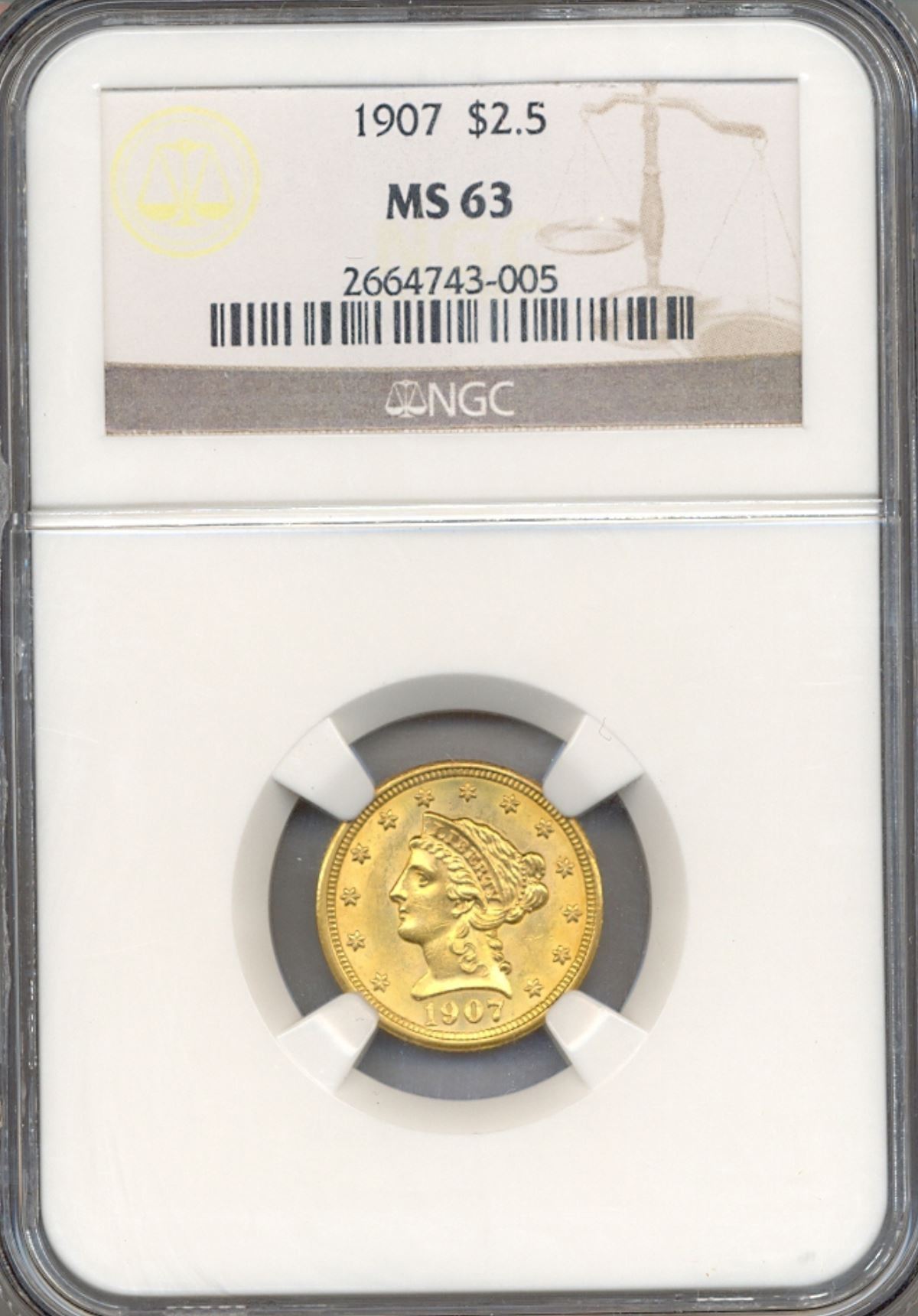 One 1907 $2.5 Indian Head Quarter Eagle Gold Coin NGC MS63.