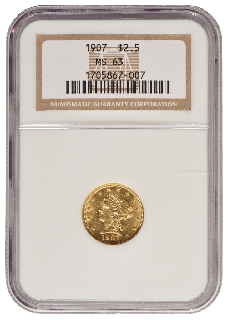 One 1907 $2.5 Liberty Gold Coin NGC MS63.