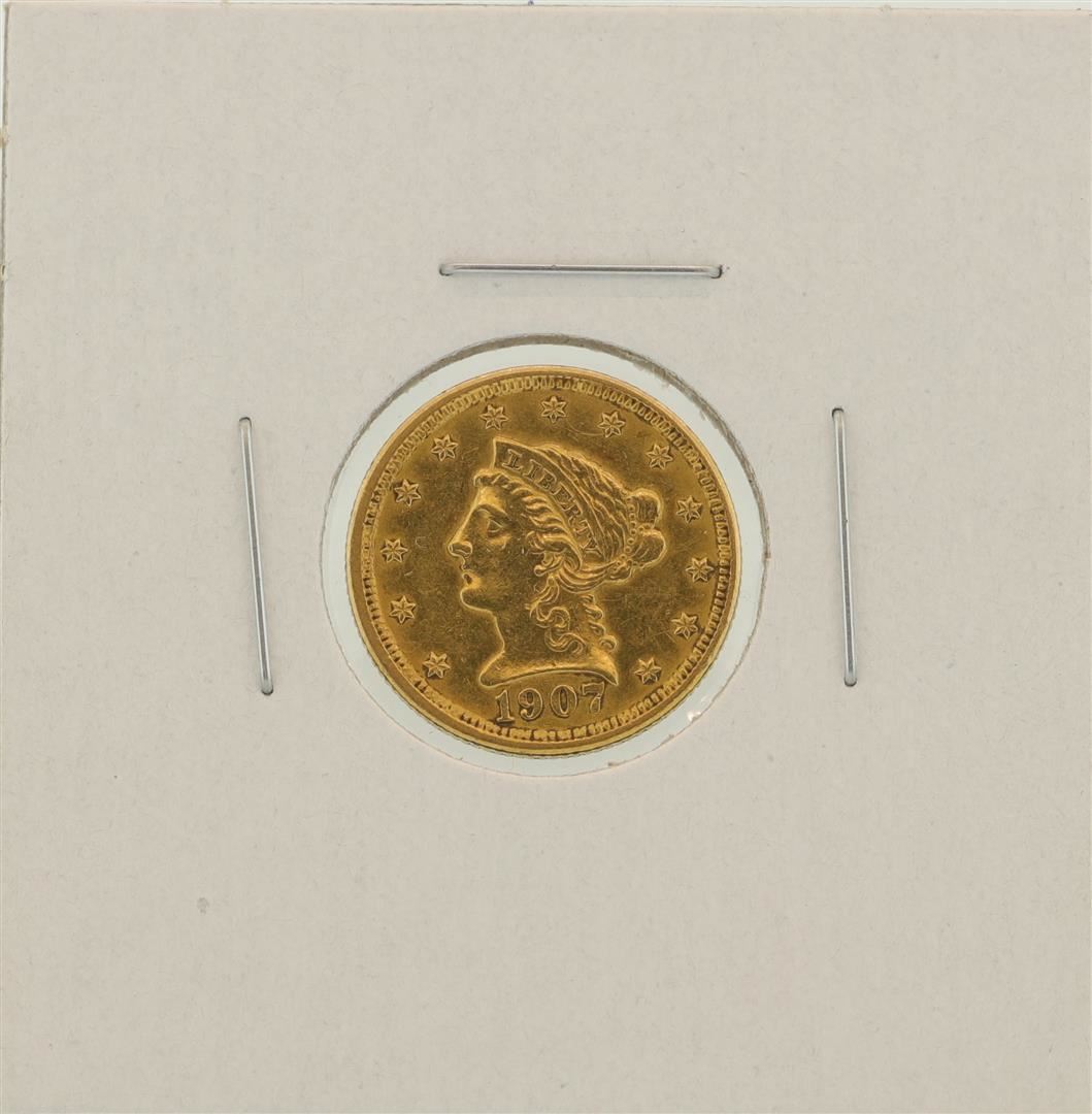 One 1907 $2.5 Liberty Head Quarter Eagle Gold Coin.